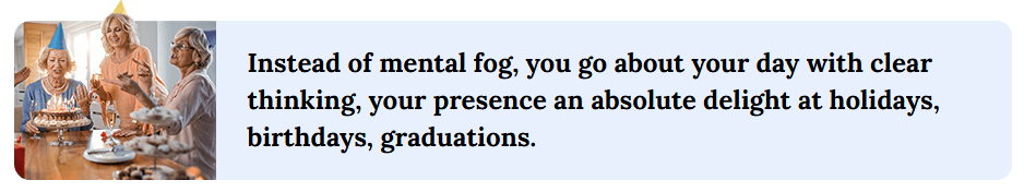 You’re reconnected with more brain power, allowing you to enjoy sharper thinking and a better memory at any age.